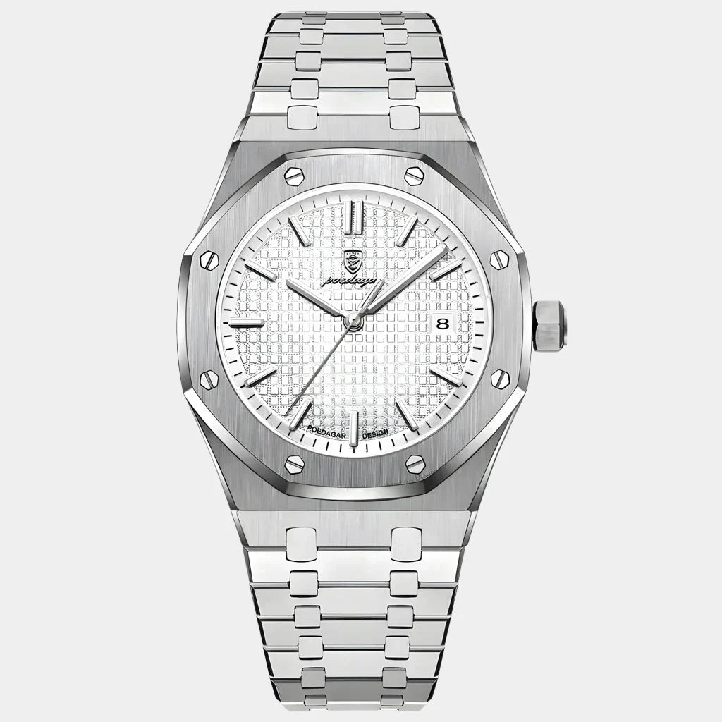 This timepiece makes a statement with its sleek, classic design—perfect for both daily wear and special occasions.